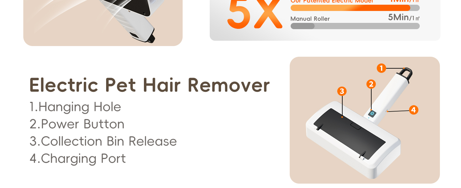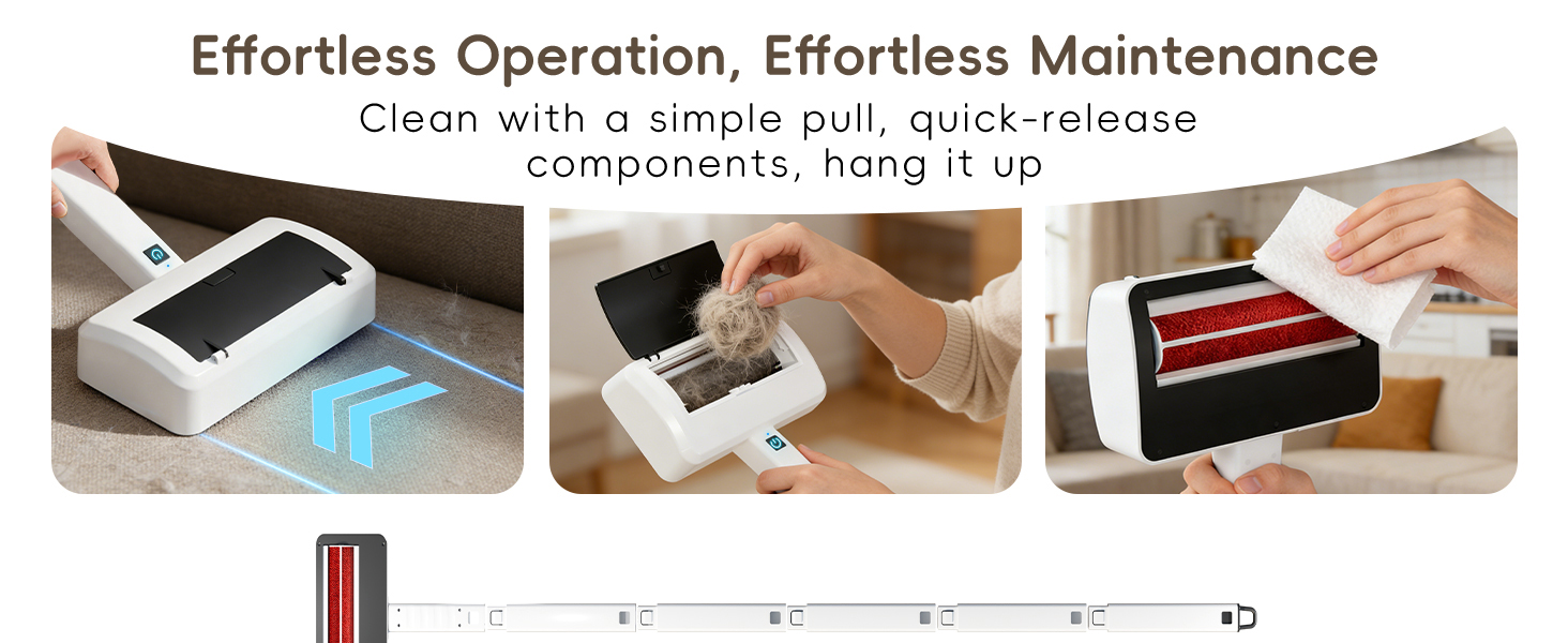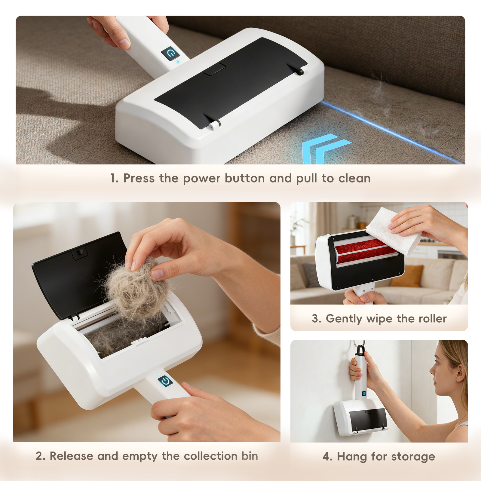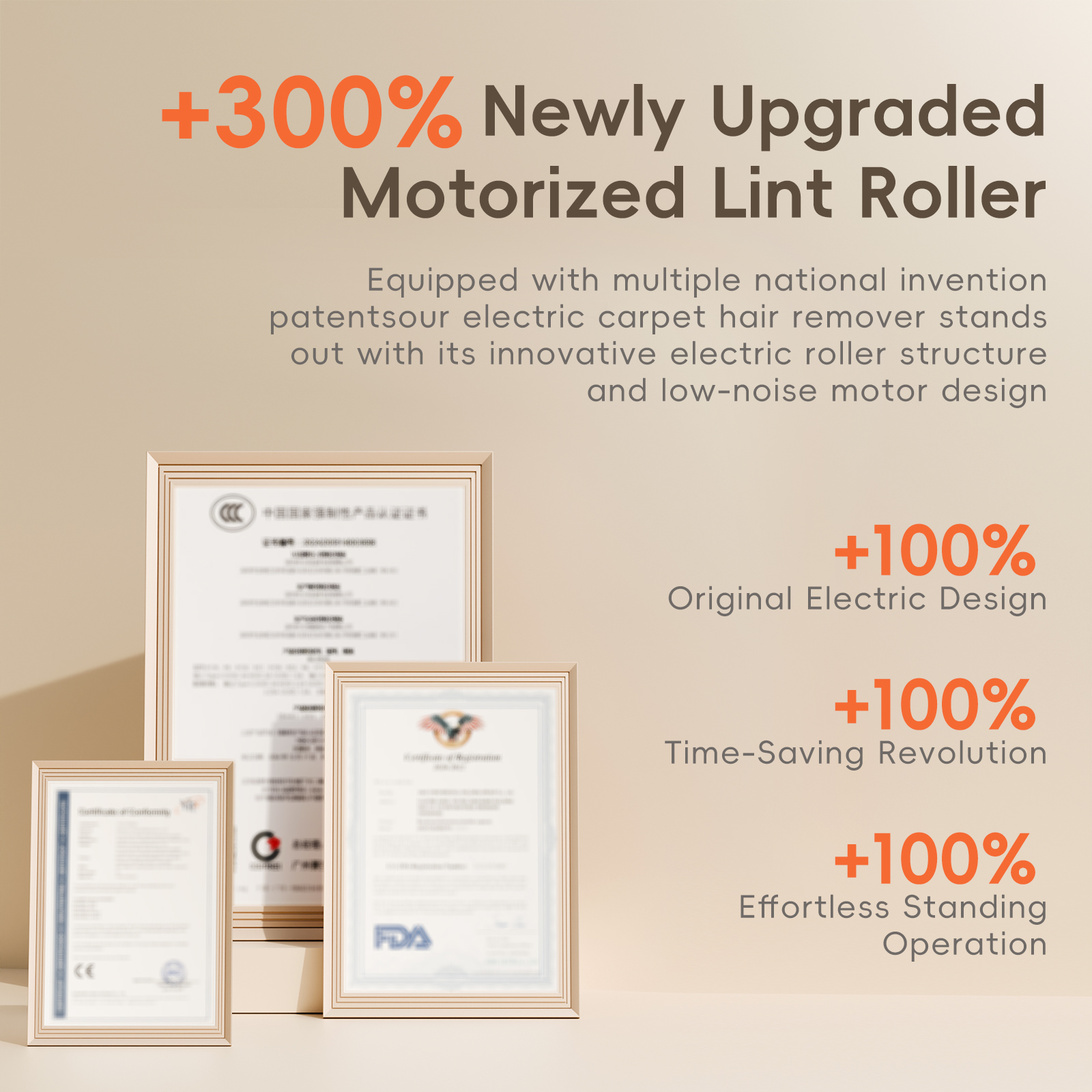 • NO MORE HAND ROLLING: Tired of pushing and pulling? No more strenuous pushing or frequent rolling – this electric pet hair remover reduces usage force by 80%, finishing cleaning in 1/3 of the time. Perfect for daily quick cleaning (only 5-10 mins/day) – busy pet owners can keep carpets hair-free effortlessly.